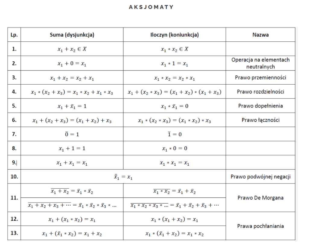 Algebra Boole’a, znana również jako algebra logiczna, to dziedzina matematyki i informatyki zajmująca się logiką binarną i operacjami wykonywanymi na dwóch wartościach logicznych: prawda i fałsz (reprezentowanych odpowiednio jako 1 i 0).