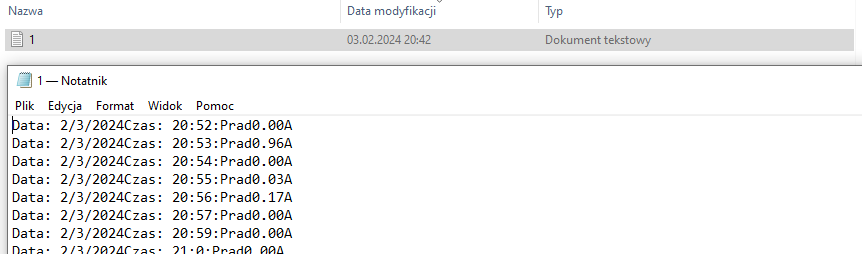 • Służy do zapisywania danych pomiarowych. W projekcie plik o nazwie „1.txt” jest używany do przechowywania danych.
