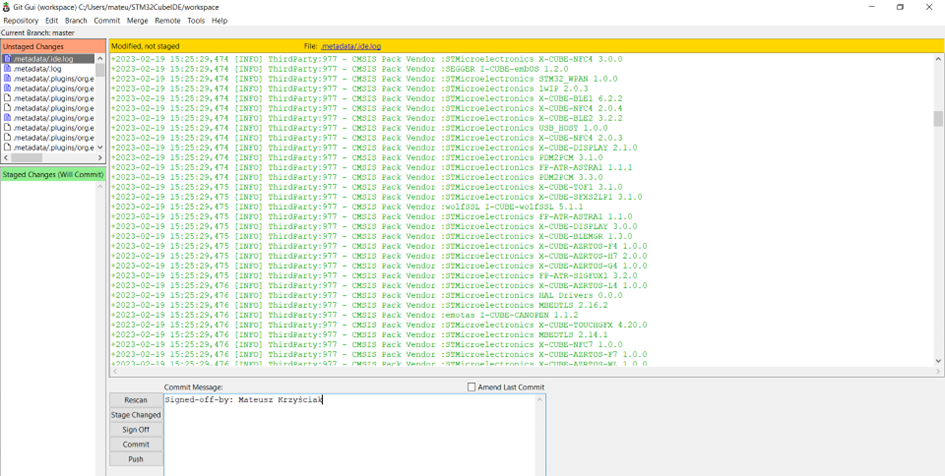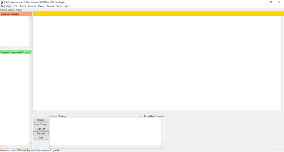 Interfejs Git GUI może różnić się w zależności od dystrybucji Git GUI, jednak zazwyczaj podstawowe funkcjonalności są podobne. Git GUI jest przyjazne dla użytkownika i może być pomocne dla osób, które nie są jeszcze zbyt doświadczone w korzystaniu z Git lub wiersza poleceń.