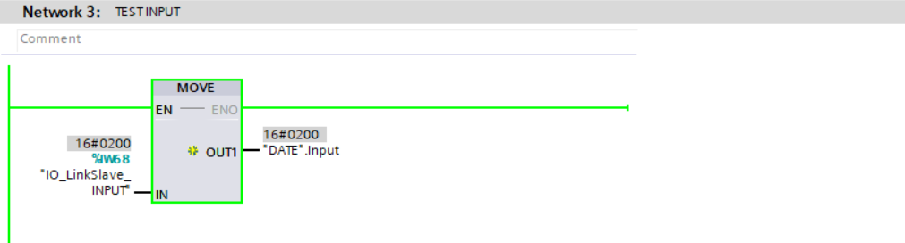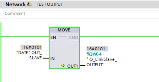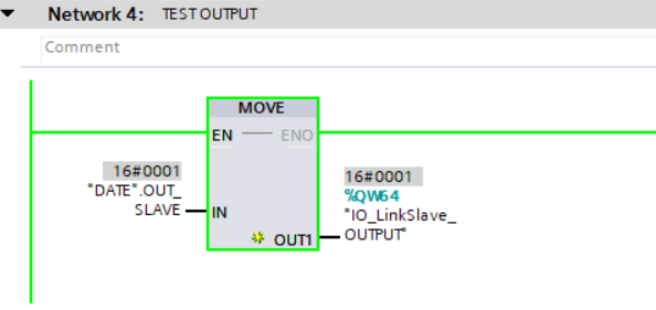 W tym celu stworzyłem w drabince z użyciem bloczka Move pokazowy program.