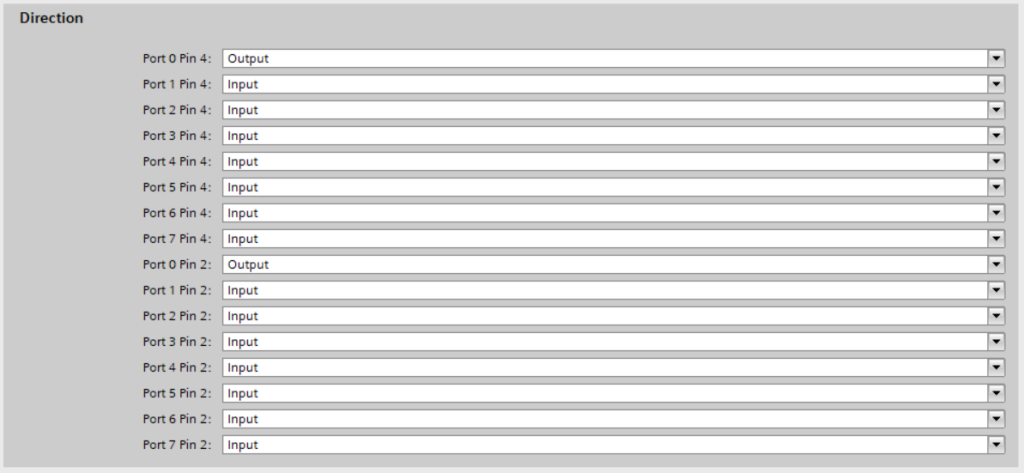 W naszym dodanym module można zmienić funkcje naszych portów w zależności czy chcemy wejście czy wyjście.