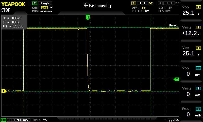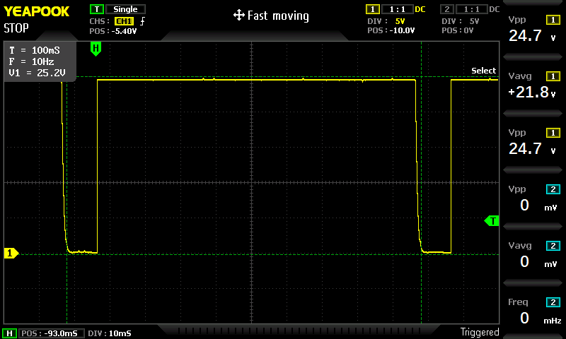 Dla 10% wypełnienia przy okresie 100 ms