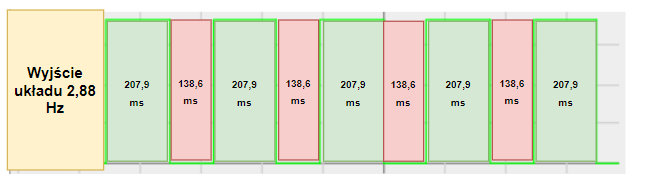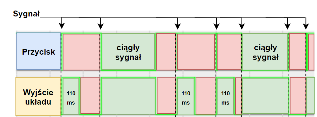 Jeśli na wejście TRIGGER nie zostanie już podawany sygnał, układ wygeneruje impuls o ustalonym czasie trwania, a następnie wróci do stanu oczekiwania na kolejny sygnał na wejściu TRIGGER.